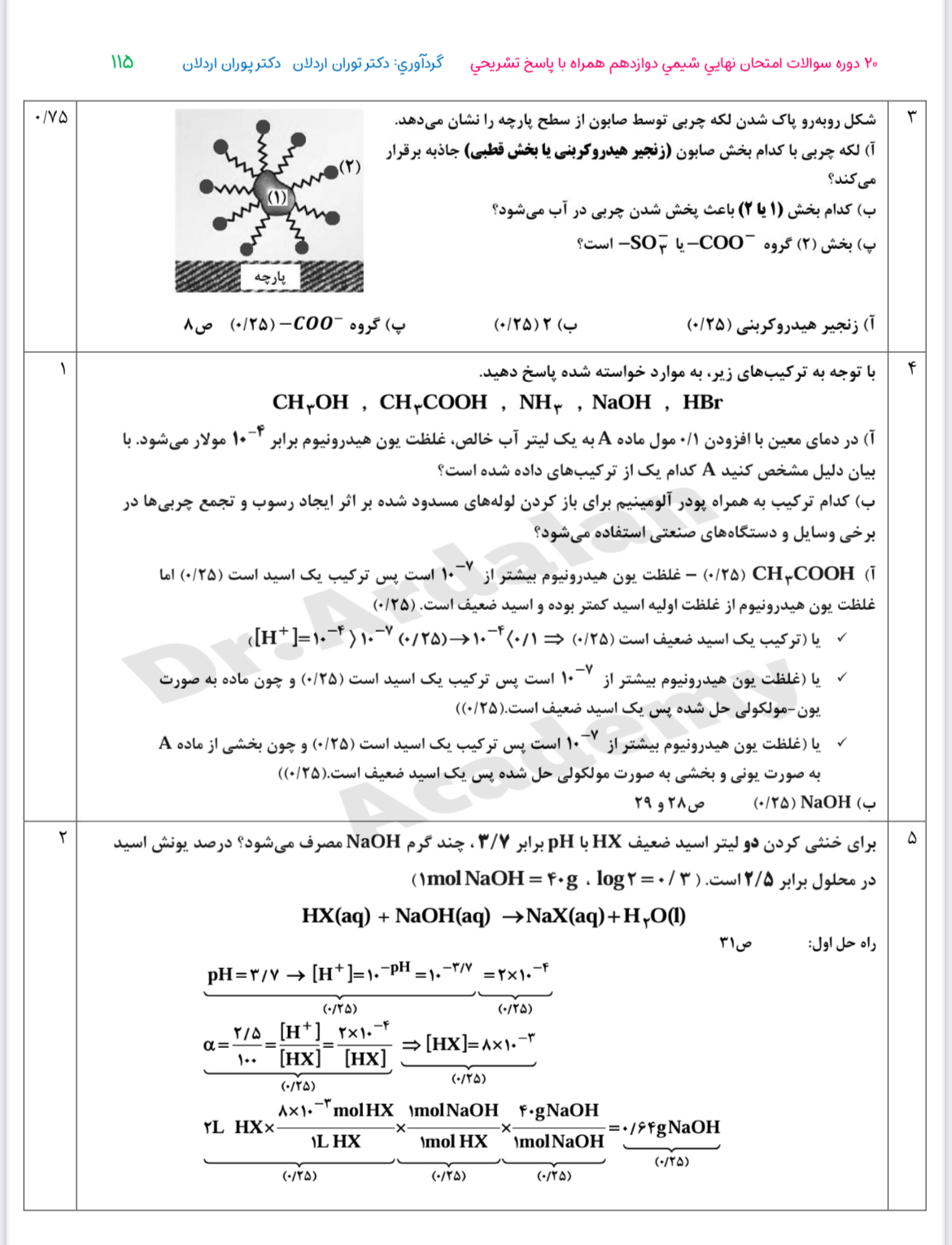 شامل 20 دوره سوالات امتحان نهايي شيمي دوازدهم همراه با پاسخ تشريحي